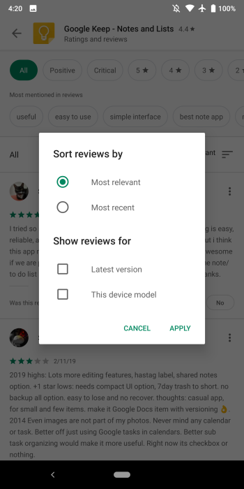 Google testa pesquisa dentro das avaliações na Play Store